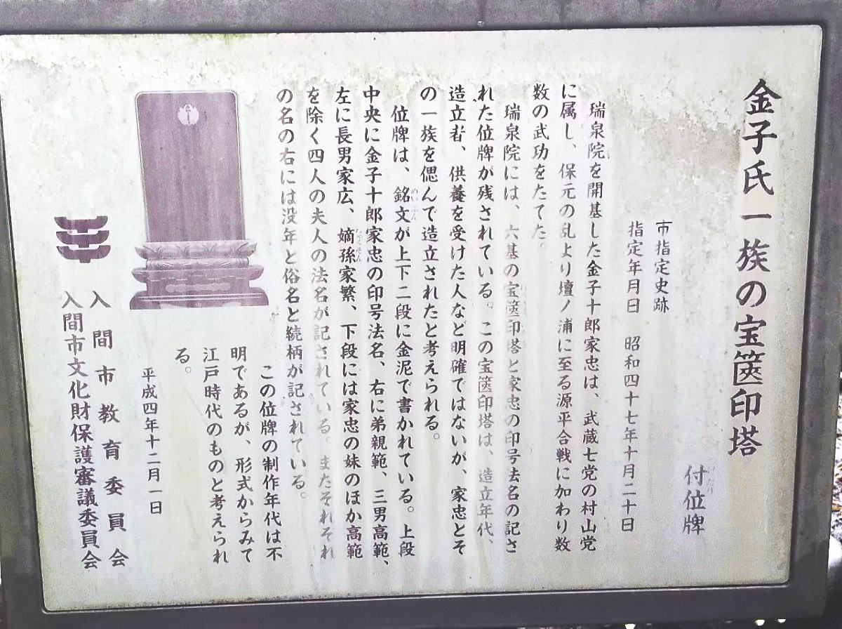 霊園の一角に入間市指定文化財「金子十郎家忠一族宝筐印塔」を擁しています!